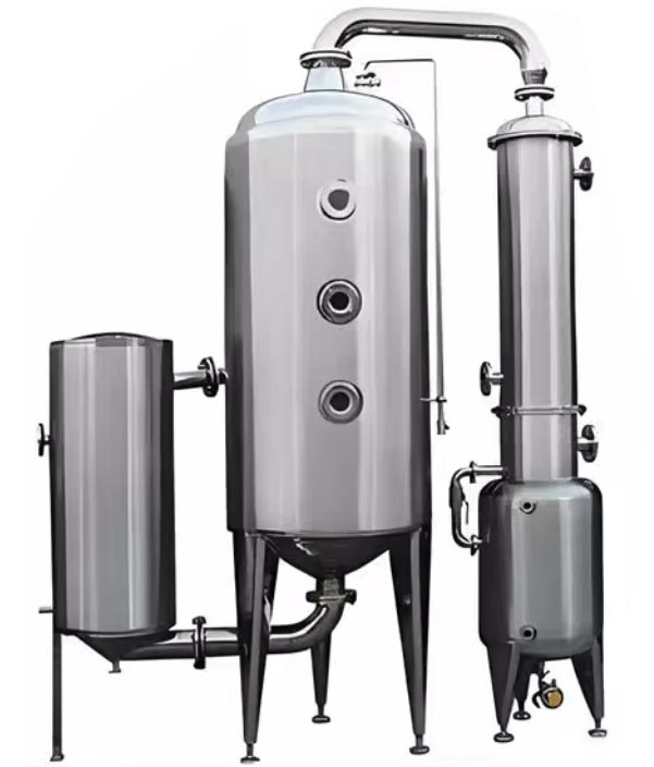 3、WZS單效外循環(huán)真空濃縮收膏器,用于單效蒸發(fā)及收濃膏。在單效正常蒸發(fā)后,關(guān)閉加熱室與蒸發(fā)室連接噴管及循環(huán)管的閥門,使料液